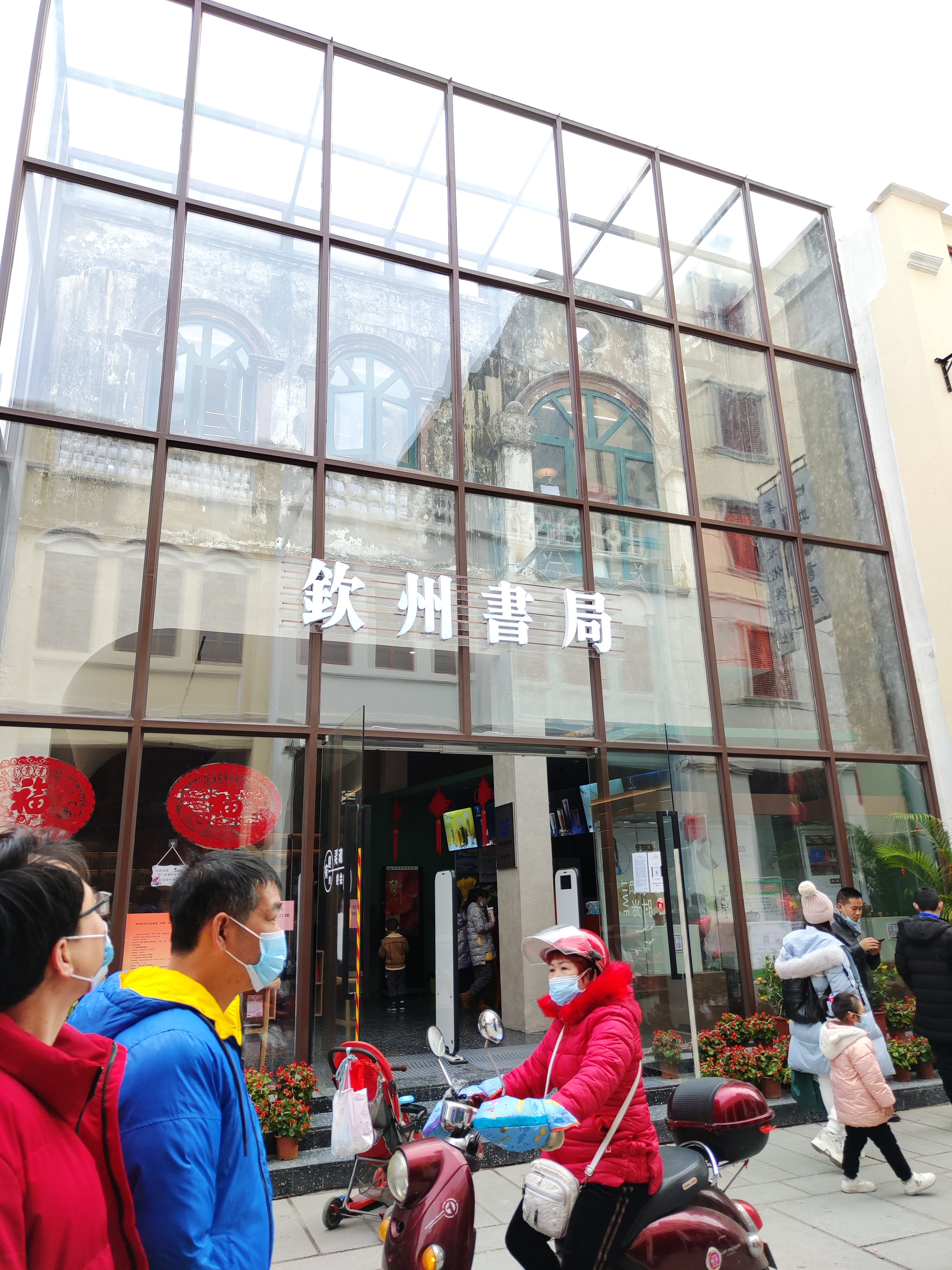 钦州书局是新打造的网红打卡点,玻璃幕墙、咖啡店、原木色的装修,在这里网红并非贬义,但确实有本地的文旅集团试图迎合某种“光滑”风向的意思。钦州老街上光滑的马卡龙色,也是其中一部分。我还找到了钦州老街的官网,